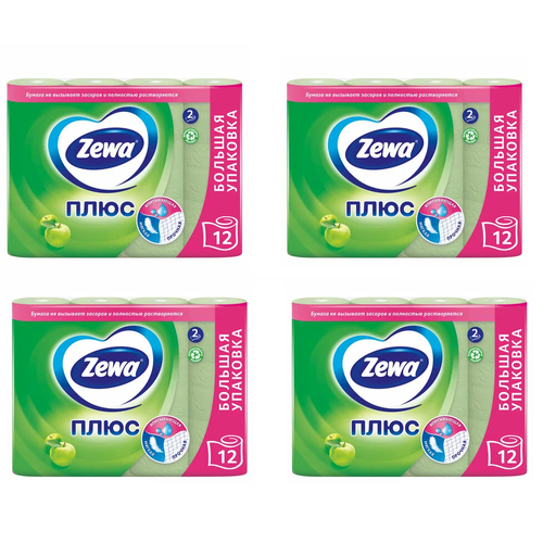НАЙТИ ВЫГОДНЕЕ - Туалетная бумага Zewa плюс 2-х слойная Яблоко, 12 шт, 4 уп