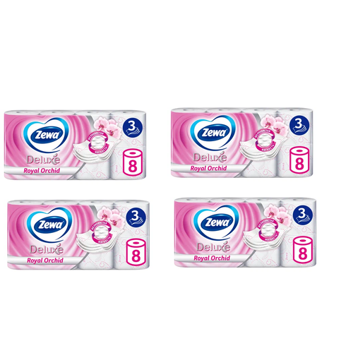 НАЙТИ ВЫГОДНЕЕ - Туалетная бумага Zewa Deluxe, 3-х слойная, орхидея, 8 шт, 4 уп