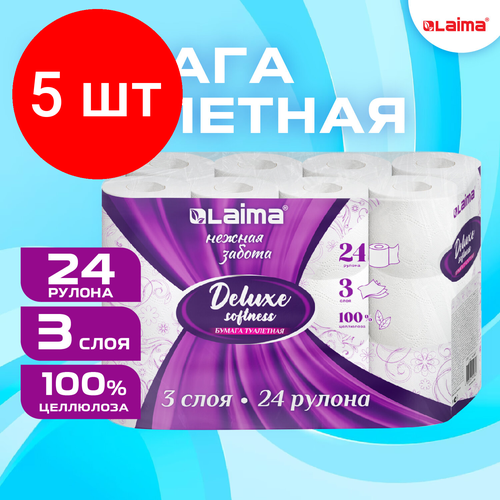 Внимание[Бумага туалетная 3-х слойная, 24 рулона (24х16.5 м), LAIMA Deluxe, 100% целлюлоза, 115397] X 5 шт.