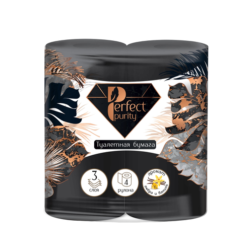 НАЙТИ ВЫГОДНЕЕ - Бумага туалетная Perfect Purity Чёрная 3 слоя с Ароматом Амбра и Ваниль 4 шт