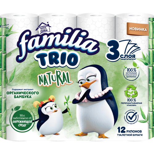 НАЙТИ ВЫГОДНЕЕ - Бумага туалетная Familia Trio белая 3 слоя 12 рулонов