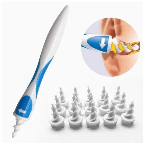тот инструмент предназначен специально для чистки ушей. Он состоит из двух частей: пластиковой ручки-держателя и сменных силиконовых наконечников. Спиральная форма наконечников эффективно и быстро извлекает ушную серу из слухового канала. Мягкий материал насадки не травмирует, а длина насадки рассчитана так, чтобы не проникнуть слишком глубоко. В отличие от ватных палочек инструмент именно очищает канал от ушной серы, а не утрамбовывает её. В комплекте идёт 16 сменных насадок, вместе с ручкой они поставляются в пластиковом боксе.