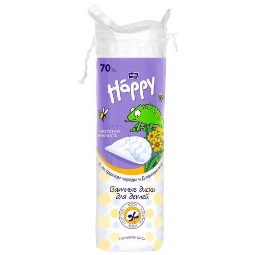 НАЙТИ ВЫГОДНЕЕ - Ватные диски для детей Bella baby Happy с экстрактом череды и Д-пантенолом, 70 шт.