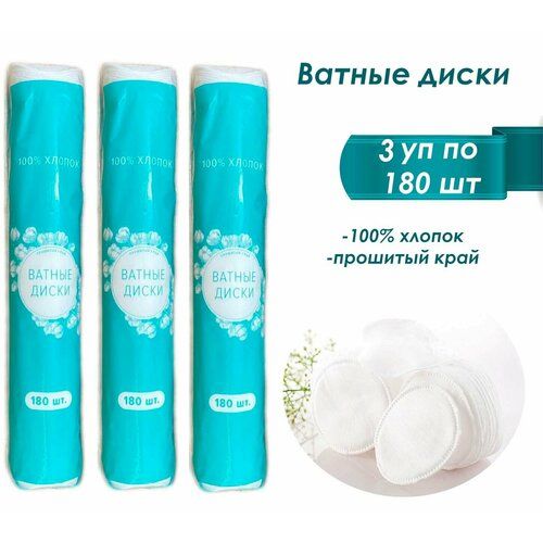 НАЙТИ ВЫГОДНЕЕ - Ватные диски, 100% хлопок, 3 уп. по 180 шт.