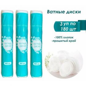 В одной упаковке 180 ватных подушечек. В комплекте 3 упаковки.