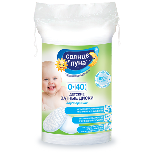 НАЙТИ ВЫГОДНЕЕ - Ватные диски Солнце и Луна для детей двусторонние (овальные), 40 шт.