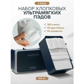 Набор состоит из 3 видов пэдов: двусторонние, тонкие, пэды-подушечки, всего 400 шт в красивой коробке, что делает бокс отличным подарком.