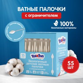 НАЙТИ ВЫГОДНЕЕ - Ватные палочки YokoSun для детей с ограничителем, 55 шт., коробка