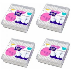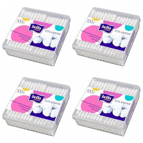 НАЙТИ ВЫГОДНЕЕ - BELLA Палочки ватные Cotton в пластиковом контейнере, 100 шт в уп, 4 уп. /