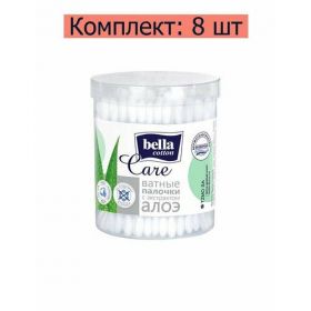 НАЙТИ ВЫГОДНЕЕ - BELLA Палочки ватные Cotton Care с экстрактом алоэ в пластиковой банке, 100 шт в уп, 8 уп. /