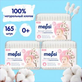 НАЙТИ ВЫГОДНЕЕ - Детские ватные палочки MEPSI с ограничителем, 3 упаковки по 55 шт. Ушные палочки для детей. Комплект