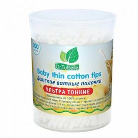 НАЙТИ ВЫГОДНЕЕ - DR. TUTTELLE Детские ватные палочки ультра тонкие в пластиковом боксе 0+, 200 шт.