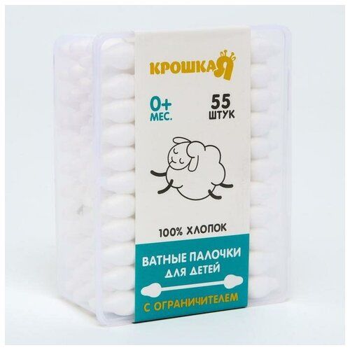 Артикул: 1533-334. Размеры: 4 x 8.5 x 11 см., Материал: Хлопок, Вес: 51 гр., Размер упаковки: 8.5 x 4 x 11 см., Вид упаковки: Контейнер, Цвет: Белый, Вид наконечника: Закруглённый, В упаковке, шт.: 55, Набор: Да, Возраст: От 0 месяцев. Детские ватные палочки с ограничителем незаменимы в ежедневном уходе за млышом с момента его рождения.Мягкий и безопасный наконечник изготовлен из натурального мягкого 100% хлопка, который хорошо впитывает влагу и отлично справляется с загрязнениями.Палочки помогут маме легко и безопасно очистить ушки и носик, после водных процедур, а так же обработать складки, пупочек или ранки на коже малыша.Ограничитель на палочке позволяет избежать травмирования малыша во время процедуры.