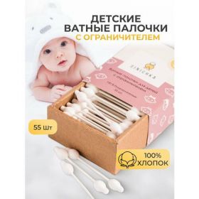 НАЙТИ ВЫГОДНЕЕ - Ватные палочки детские с ограничителем 55 шт (100% хлопок и целлюлоза)