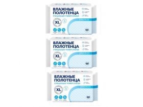 Влажные полотенца XL, универсальные без спирта, размер салфетки 28*17 см, 60 шт 101827198004
