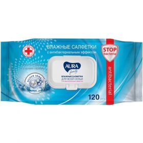 НАЙТИ ВЫГОДНЕЕ - Aura Влажные салфетки Family антибактериальные с ионами серебра, 120 шт.