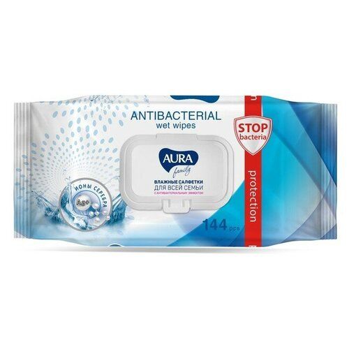 НАЙТИ ВЫГОДНЕЕ - Влажные салфетки AURA FAMILY, с антибактериальным эффектом 144 шт.