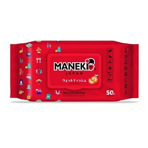 НАЙТИ ВЫГОДНЕЕ - Салфетки влажные Maneki, универсальные очищающие, аромат цитрусов, 50 шт./упак