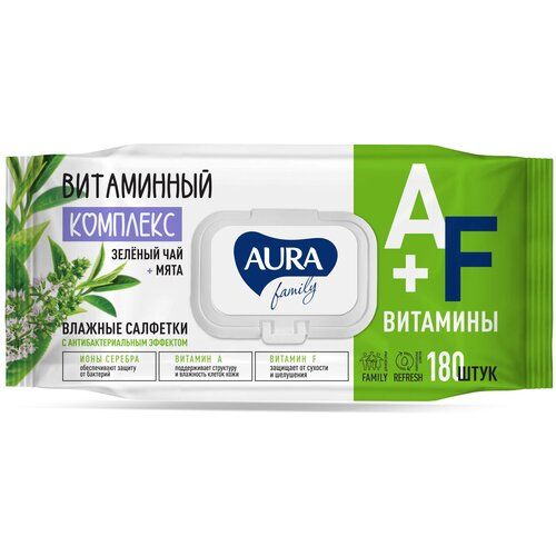 Влажные салфетки Aura family с антибактериальным эффектом big-pack 180 шт.