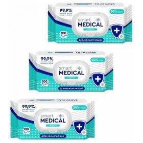 НАЙТИ ВЫГОДНЕЕ - Smart Medical Влажные салфетки Дезинфицирующие спиртовые, 100 шт., 3 уп.