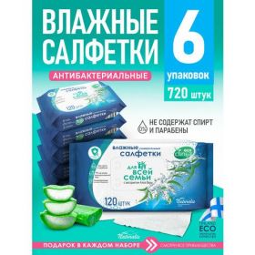 Влажные салфетки для всей семьи 6 пачек по 120 штук - это комфортный и эффективный вариант для быстрой уборки любых поверхностей. Влажные салфетки антибактериальные очищают, устраняют неприятный запах, оставляя легкий аромат свежести и чистоты. Влажные салфетки для уборки дома универсальны, подходят для любых поверхностей и уборки всего дома: полов, мебели, керамической плитки, сантехники, кухонных поверхностей, холодильников, микроволновых печей, изделий из пластика и нержавеющей стали. Влажные салфетки большие изготовлены из нетканого волокна. Качественный материал не пропускает загрязнений. Они не мылятся, не прилипают, не оставляют ворсинок, обеспечивая комфортное использование. В составе лосьона входят экологически чистые, безопасные материалы, которые заботятся о коже рук, сохраняя её здоровой. Влажные салфетки для уборки не содержат спирта, можно использовать как влажные салфетки для детей. Одноразовые салфетки универсальные: могут использоваться для очищения торпеды авто или для уборки после рисования и другого творчества. Влажные салфетки набор в пачке защищены от высыхания пластиковым клапаном. Наши влажные салфетки идеально подходят для использования у детей. Влажные салфетки детские бережно очищают кожу, не вызывая раздражения, что особенно важно для малышей с чувствительной кожей. Детские влажные салфетки благодаря гипоаллергенности дает уверенность родителям в безопасности продукта для своего ребёнка. Можно так же использорвать их как влажные салфетки для новорожденных. Незаменимый помощник в уходе за детьми как дома, так и во время прогулок или путешествий. Могут использоваться как влажные салфетки для интимной гигиены. Детские влажные салфетки для новорожденных будут вам незаменимы.