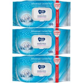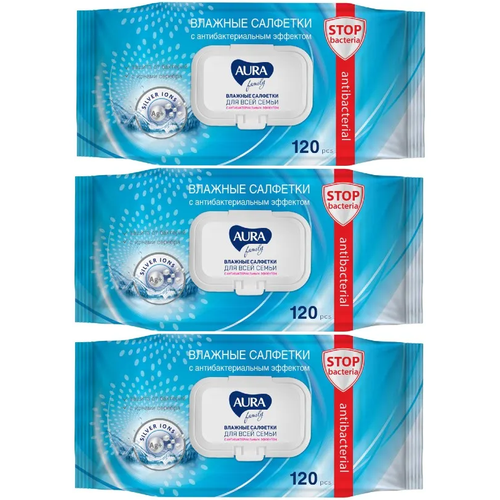 НАЙТИ ВЫГОДНЕЕ - Aura Влажные салфетки Family антибактериальные с ионами серебра, 120 шт., 3 уп.