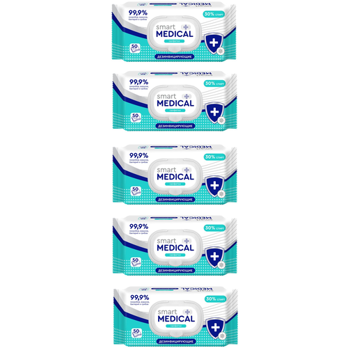 НАЙТИ ВЫГОДНЕЕ - Влажные салфетки Smart medical дезинфицирующие с пластиковым клапаном, 50 шт 5 пачек
