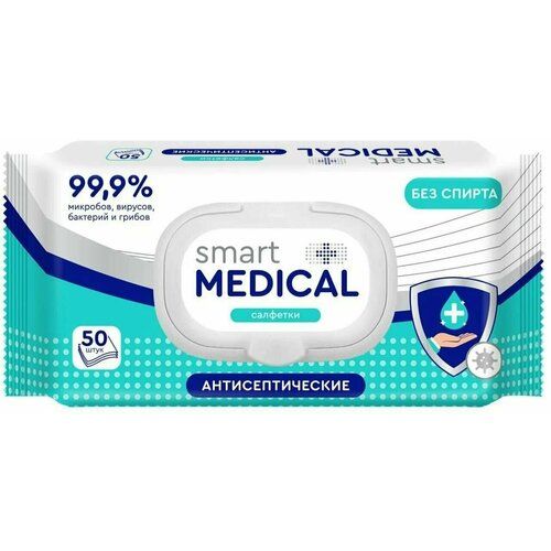 НАЙТИ ВЫГОДНЕЕ - SMART MEDICAL Влажные салфетки дезинфицирующие с клапаном 50 шт.