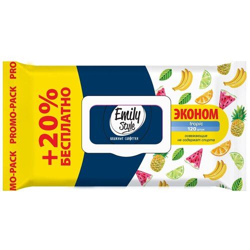 НАЙТИ ВЫГОДНЕЕ - Emily Style Влажные салфетки Tropic ЭКОНОМ, 120 шт., 2 уп.
