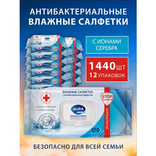НАЙТИ ВЫГОДНЕЕ - Влажные салфетки для всей семьи антибактериальные с крышкой 1440 шт (120 шт х 12), AURA FAMILY, детские