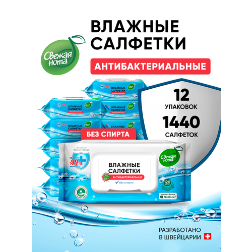 НАЙТИ ВЫГОДНЕЕ - Свежая нота влажные салфетки антибактериальные без спирта 1440 шт (12 уп по 120 штук)