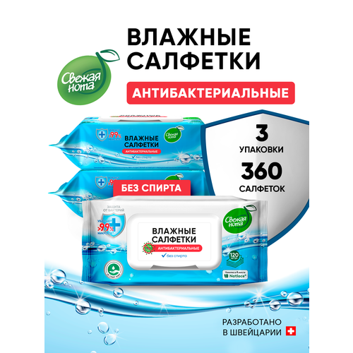 НАЙТИ ВЫГОДНЕЕ - Свежая нота влажные салфетки антибактериальные с клапаном 360 шт (3 уп по 120 штук)