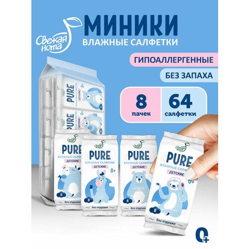 НАЙТИ ВЫГОДНЕЕ - Свежая нота Pure влажные салфетки без запаха мини карманные, 8х8 (64 шт)