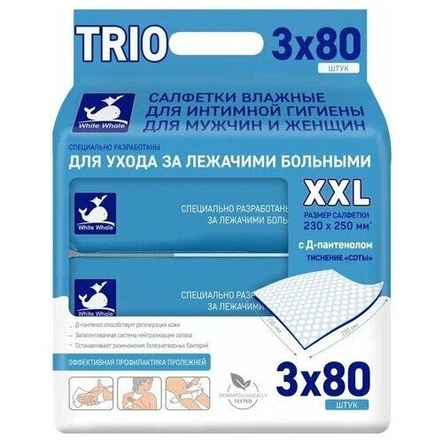 НАЙТИ ВЫГОДНЕЕ - Влажные салфетки White Whale Trio, для лежачих больных, 3х80 штук