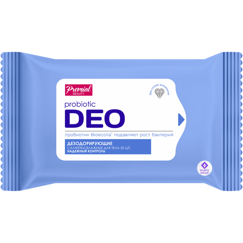 PREMIAL Салфетки влажные дезодорирующие предназначены для устранения запаха пота и являются альтернативой применения дезодоранта. В состав входит пробиотик наружного действия Bioecolia®, который обладает антимикробным эффектом и способен подавлять и угнетать рост бактерий на коже