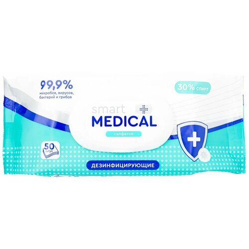 НАЙТИ ВЫГОДНЕЕ - Smart medical Влажные салфетки Smart medical дезинфицирующие 50шт