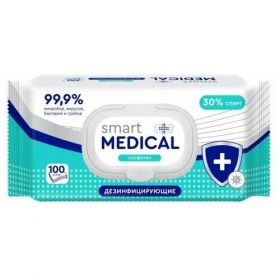Салфетки дезинфицирующие Smart medical № 100 с пластиковым клапаном обладают антимикробным действием в отношении возбудителей острых респираторных заболеваний бактериальной и вирусной этиологии, кишечных инфекций бактериальной и вирусной этиологии, грибковых заболеваний(кандидозы). Назначение: для дезинфекции небольших по площади поверхностей в помещение, в том числе предметов обстановки, жесткой мебели (стулья, кровати, столы, подголовники, подлокотники кресел), осветительной аппаратуры, жалюзи, радиаторов отопления, ручек дверных, оконных, поверхностей приборов и оборудования, средств личной гигиены, игрушек (кроме мягких), телефонных аппаратов, оргтехники.
