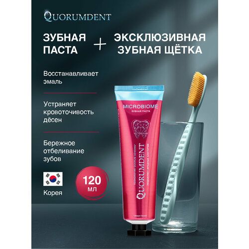 НАЙТИ ВЫГОДНЕЕ - Набор Для него зубная паста отбеливающая Quorumdent плюс зубная щётка ( голубая ) с ионами золота средней жёсткости Корея