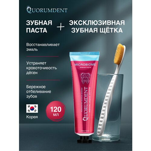 НАЙТИ ВЫГОДНЕЕ - Набор Шарм зубная паста отбеливающая Quorumdent плюс зубная щётка ( белая ) с ионами золота средней жёсткости Корея