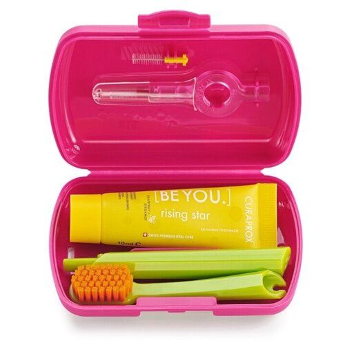 НАЙТИ ВЫГОДНЕЕ - CURAPROX Дорожный набор BE YOU yellow (паста, щетка, ершики), малиновый бокс