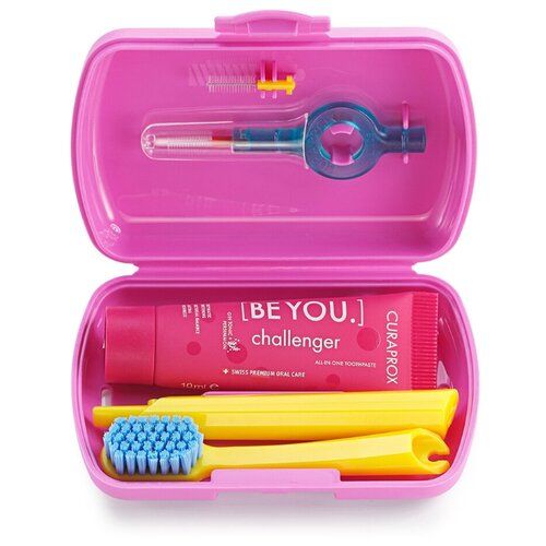 НАЙТИ ВЫГОДНЕЕ - CURAPROX Дорожный набор BE YOU red (паста, щетка, ершики), розовый бокс