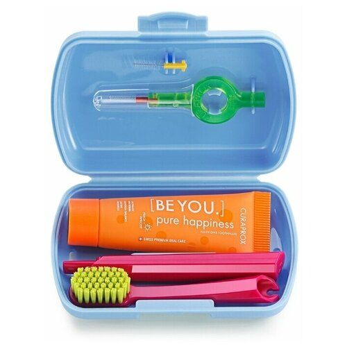 НАЙТИ ВЫГОДНЕЕ - CURAPROX Дорожный набор BE YOU orange (паста, щетка, ершики), голубой бокс