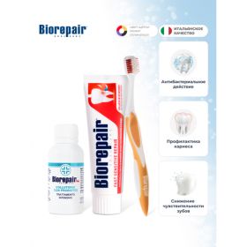 НАЙТИ ВЫГОДНЕЕ - Набор Biorepair Зубная паста Fast Sensitive, 75 мл, Зубная щетка Denti Sensibili, поласкиватель, 30 мл