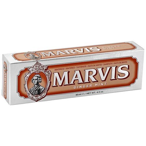 Зубная паста Marvis Ginger Mint — обладает нежной кремообразной консистенцией и отличным очищающим свойствам, а также стильному ретро-дизайну упаковки. Особая технология мелкодисперсной массы создает плотную, однородную текстуру, усиливающую неповторимые ароматы зубной пасты Marvis. Нежная консистенция и освежающий мятный вкус превращают чистку зубов в настоящее удовольствие. Чудесный свежий аромат мяты и согревающие пряные нотки имбиря, придают дыханию длительную свежесть.