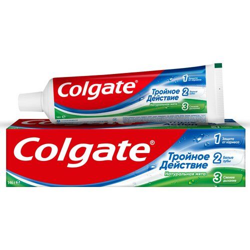 Зубная паста Colgate Тройное Действие обеспечивает максимальную защиту от кариеса. Эта трехцветная зубная паста оказывает тройное действие: помогает защищать зубы от кариеса, помогает удалять потемнения с поверхности зубов и освежает дыхание. Что немаловажно, Colgate Тройное Действие обладает приятным мятным вкусом