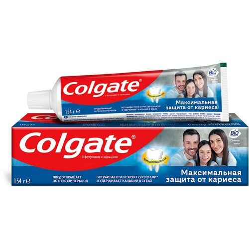 Приятный мягкий мятный вкус Colgate Максимальная Защита от кариеса Свежая Мята надолго освежит дыхание.