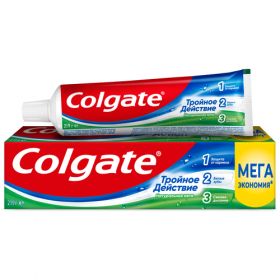 Зубная паста Colgate Тройное Действие обеспечивает максимальную защиту от кариеса. Эта трехцветная зубная паста оказывает тройное действие: помогает защищать зубы от кариеса, помогает удалять потемнения с поверхности зубов и освежает дыхание. Что немаловажно, Colgate Тройное Действие обладает приятным мятным вкусом