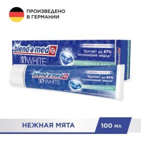 Blend-A-Med "3D White" Нежная мята - это зубная паста, которая обеспечивает комплексный уход за полостью рта, делая зубы белее и укрепляя эмаль.