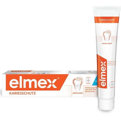 Зубная паста Элмекс Защита от кариеса с высокоэффективным аминофторидом реминерализирует, укрепляет эмаль и защищает зубы от кариеса. Зубная паста предназначена для ежедневной гигиены всей полости рта с целью обеспечения длительной защиты от кариеса, снижения растворимости, а также укрепления зубной эмали. Аминофторид, содержащийся в зубной пасте Элмекс Защита от кариеса, помогает формировать устойчивый слой фторида кальция на поверхностях зубов, который обеспечивает длительную и высокоэффективную защиту от воздействия кислот на зубы.