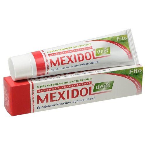 Mexidol Dent Fito – для профилактики обострения пародонтита и пародонтоза; Антиоксидант, защищая дёсны от воспаления, активизирует действие растительных экстрактов, содержащихся в пасте. Растительные экстракты изготовлены высокотехнологичным способом, во много раз увеличивающим их активность. Фитонциды хвои пихты оказывают выраженное антибактериальное действие, а подорожник - кровоостанавливающий эффект.